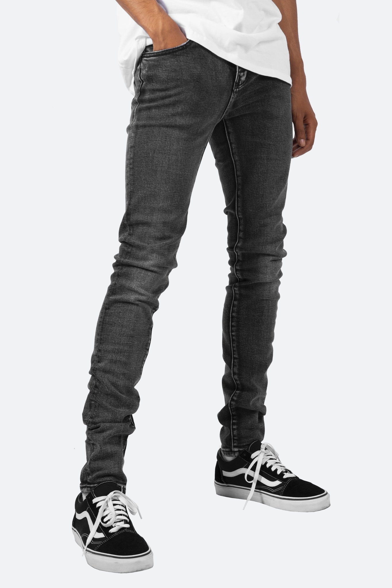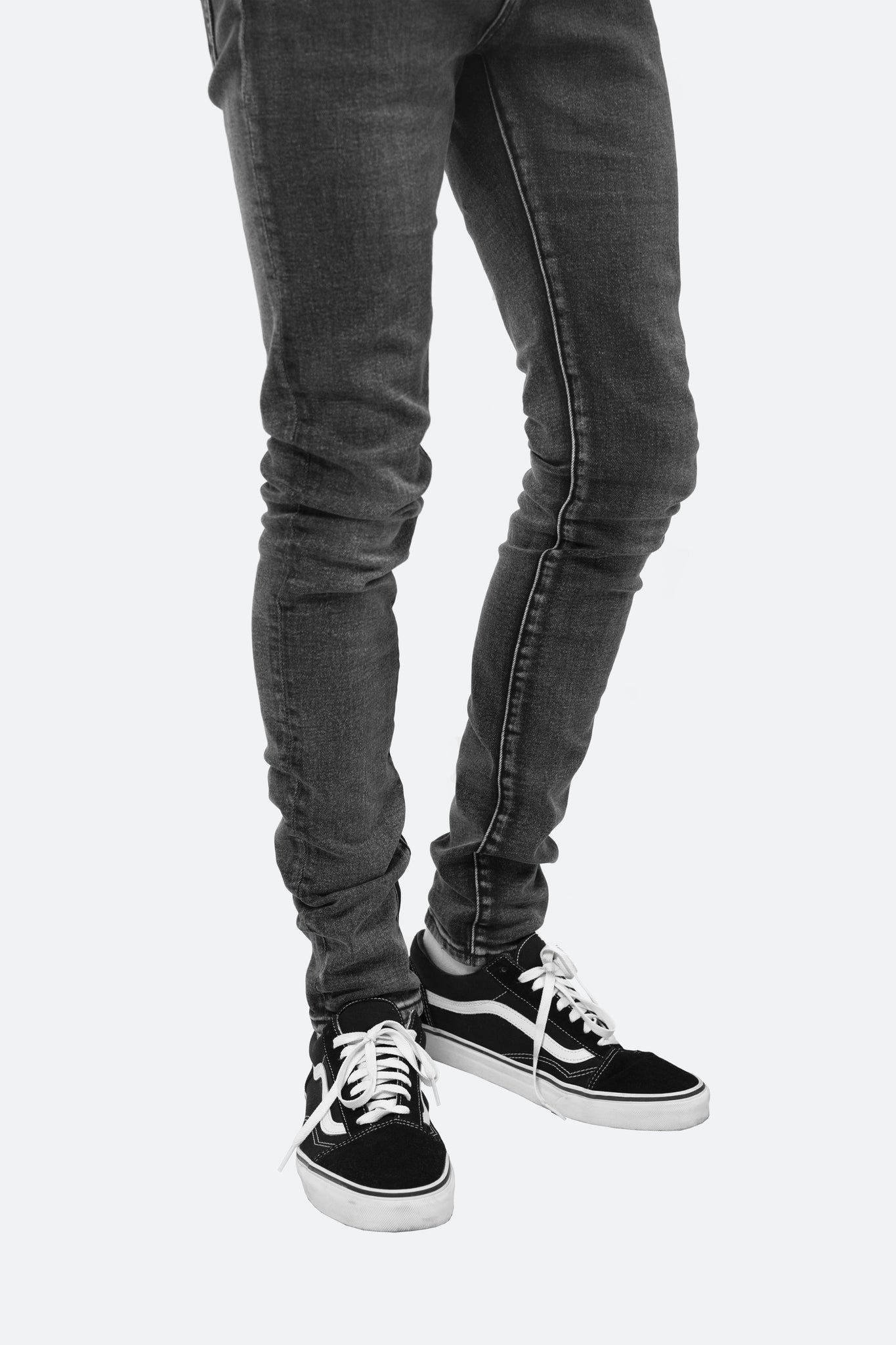 the X147 Stretch Denim is designed with our new X fit which is skinny throughout with an extended inseam for stacking, and features vintage grey wash and sanding details throughout.